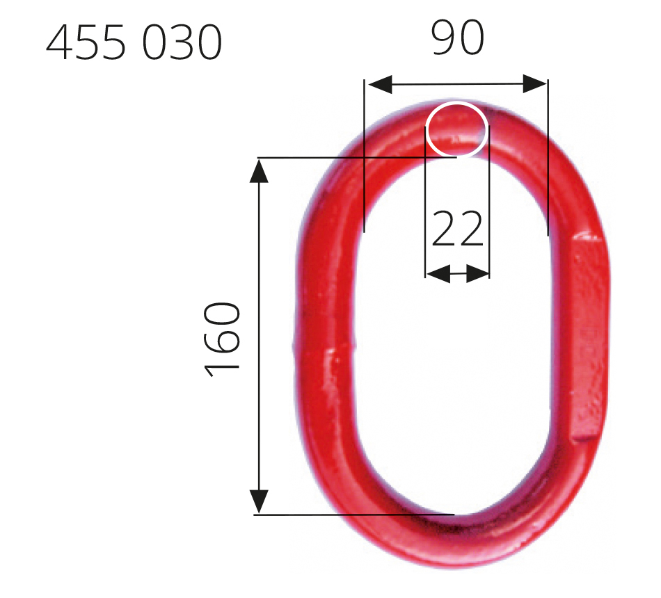 Dimensions: 160x90mm, d-22mm Design: GK 8, chain – NG 13mm Working load: 5300kg Notes: dimensions in accordance with EN-1677-4