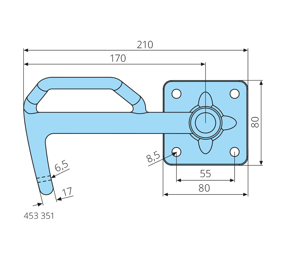 Dimensions: D – 17mm, hook L – 170mm, plate 80x80mm, size 2 Design: galvanized Variant: right-handed