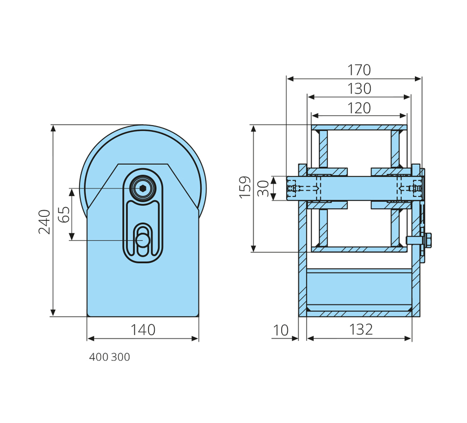 Dimensions: 30 x 159 x 120/130 mm, H – 240 mmConstruction: axial lubrication, brass bushings