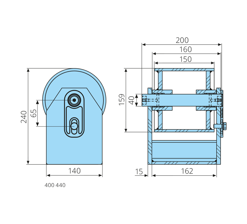 Dimensions: 40 x 159 x 150/160 mm, H – 240 mmMake: axial lubrication, brass bushings