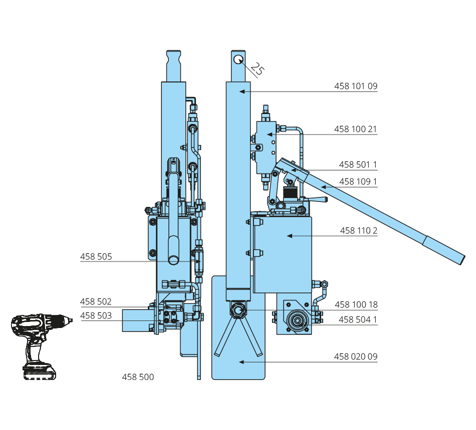 Design: double-acting, under screwdriver – left, stroke 500mm, 25 c m³Mounting: left side, front adapter, without cordless screwdriver