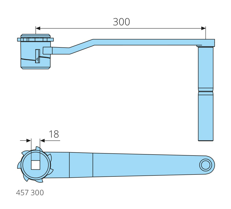 L-300mm, square 18mm, with connector, for BRANO type elevator