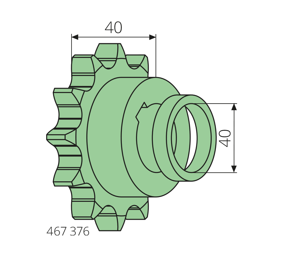 40-109-40mm, 12 teeth, keyway bore, with spacer ring