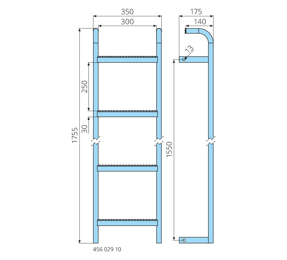 Dimensions: 1755/1430mm Design: 6 steps, galvanized, with bolt hole, steel Notes: compliant with health and safety regulations