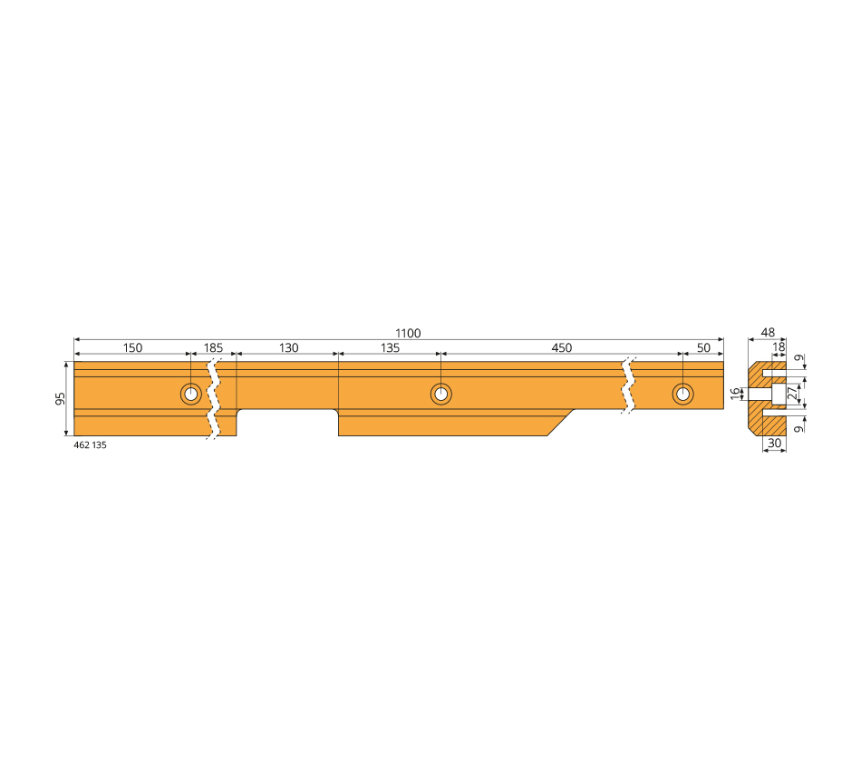 Dimensions: 1100x48x95mm Type: polyamide – confetti Variant: right-handed