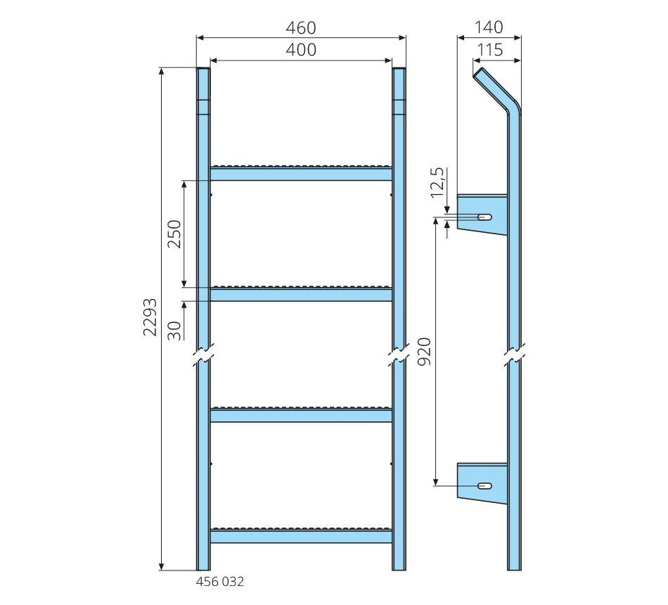 Dimensions: 2190/920mm Type: 8 steps, galvanized, bolt-on, steel Type: BERINGER Notes: compliant with health and safety regulations