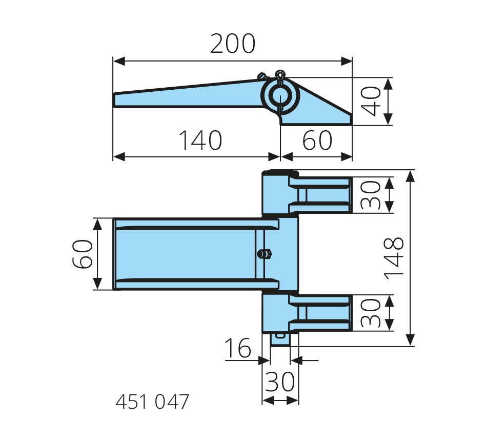 Dimensions: 30 x 148 mmVariant: leftApplication: for City containersMade of: forged, lubrication in sleeve