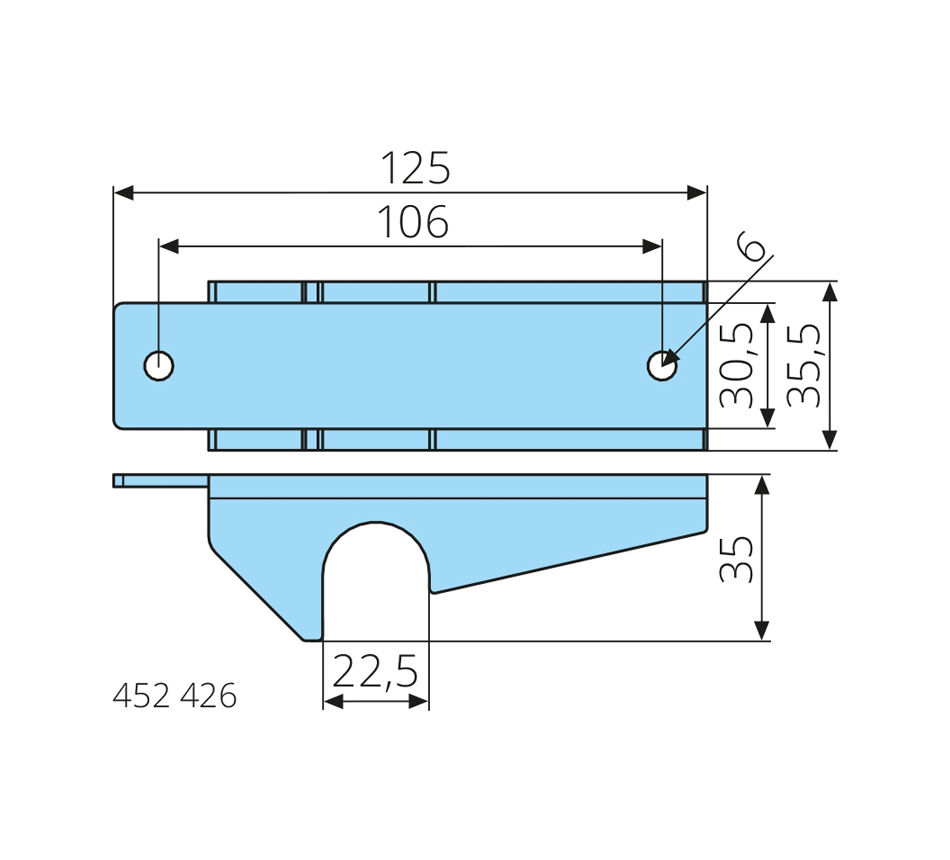 35.5x125x35mm, galvanized, to be screwed to the underside of the cover