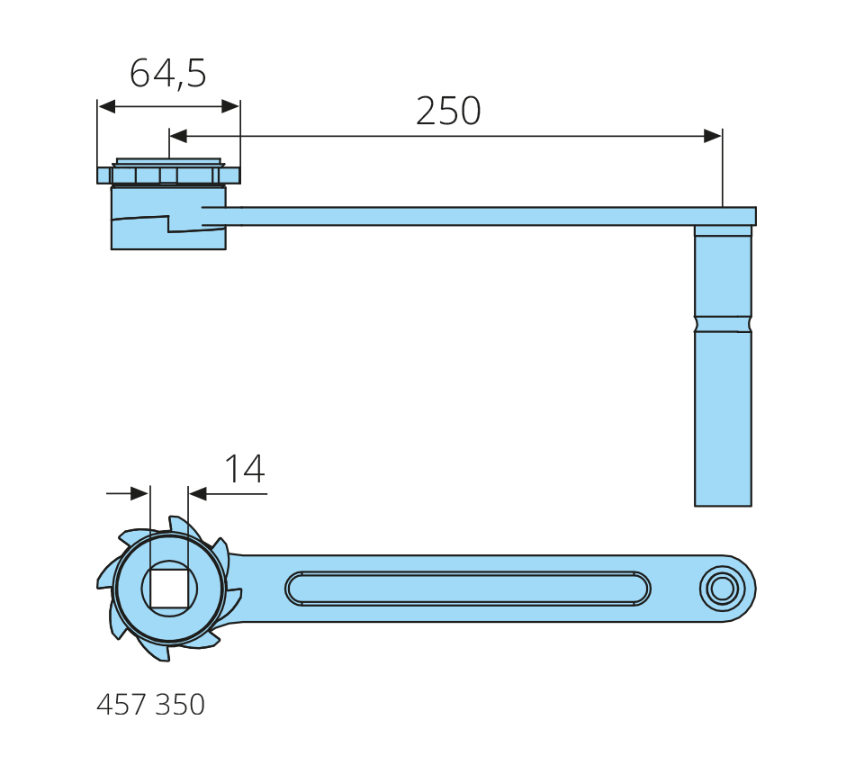 L-250mm, 14mm square, D-64.5mm, galvanized