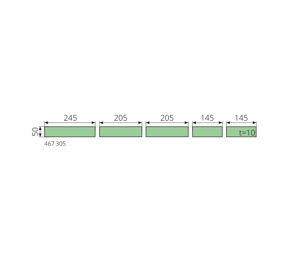 Dimensions: 50×145/205/245x10mm Set: 5 pieces