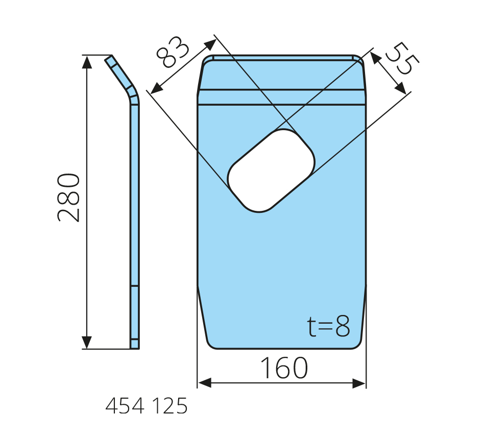 Dimensions: 280x160x8mm Variant: left Notes: S235JR