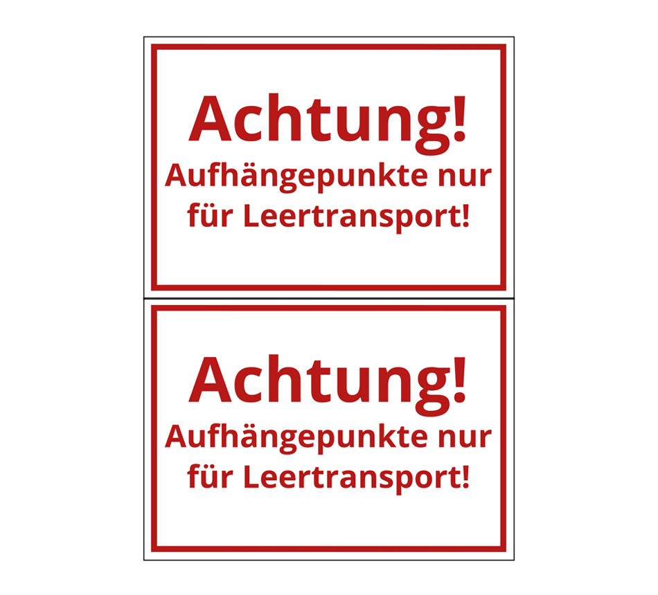 “Aufhängepunkte nur für Leertransport”, 210x150mm, 2pcs/sheet