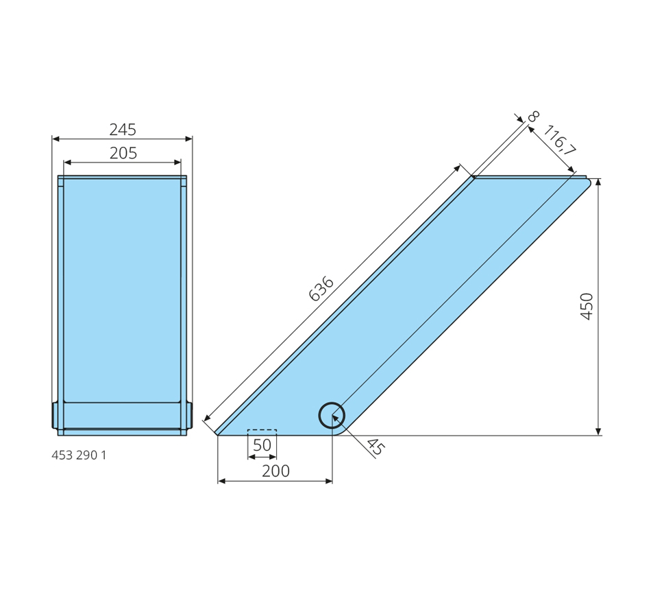 Dimensions: 245x636x8mm Design: pin S355J2 Mounting: internal Notes: DIN 30720