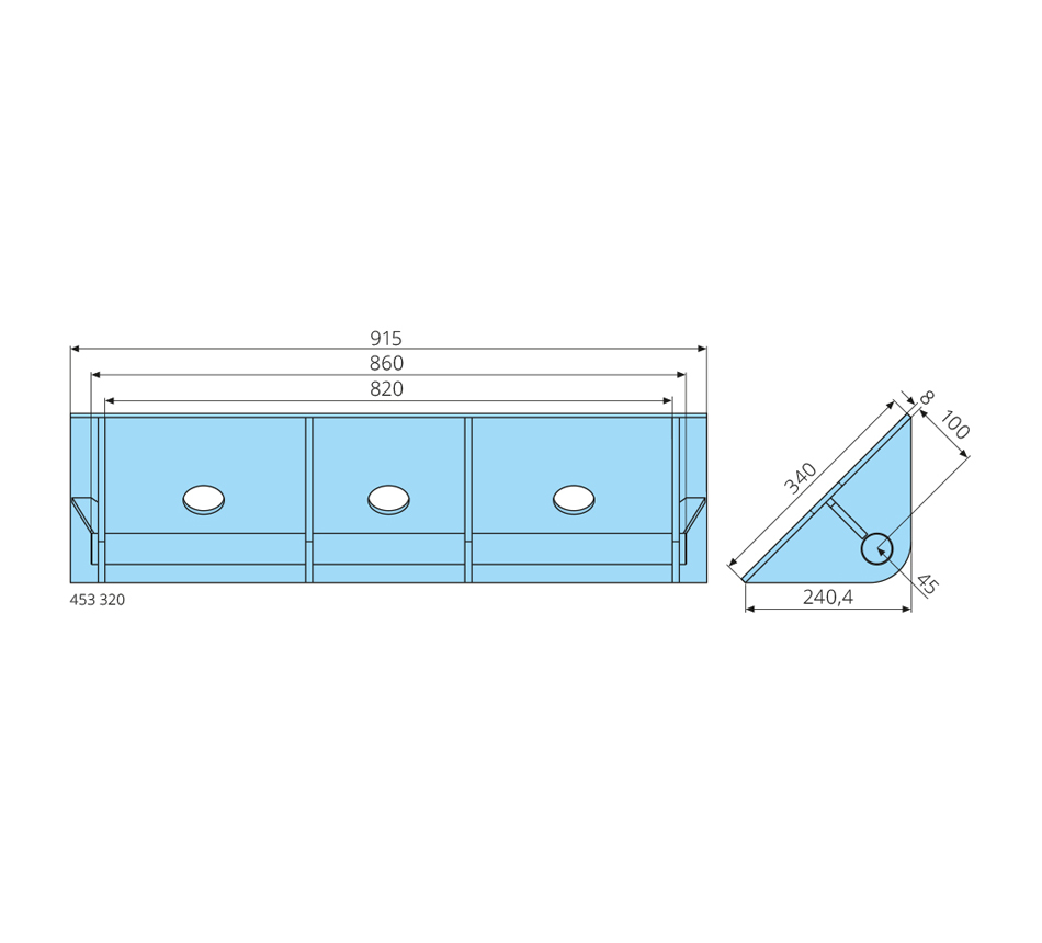 Dimensions: 915x340x8mm Type: pin S355J2 Variant: triple