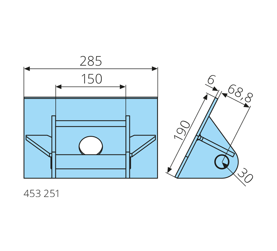 Dimensions: 285x190x6mm Type: pin Application: for mini Trough Notes: DIN 30735, S355J2