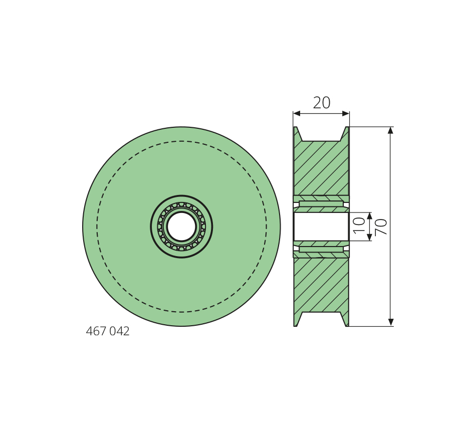 Dimensions: 10x70x20mm Notes: 42CrMo4 Design: with needle bearing.