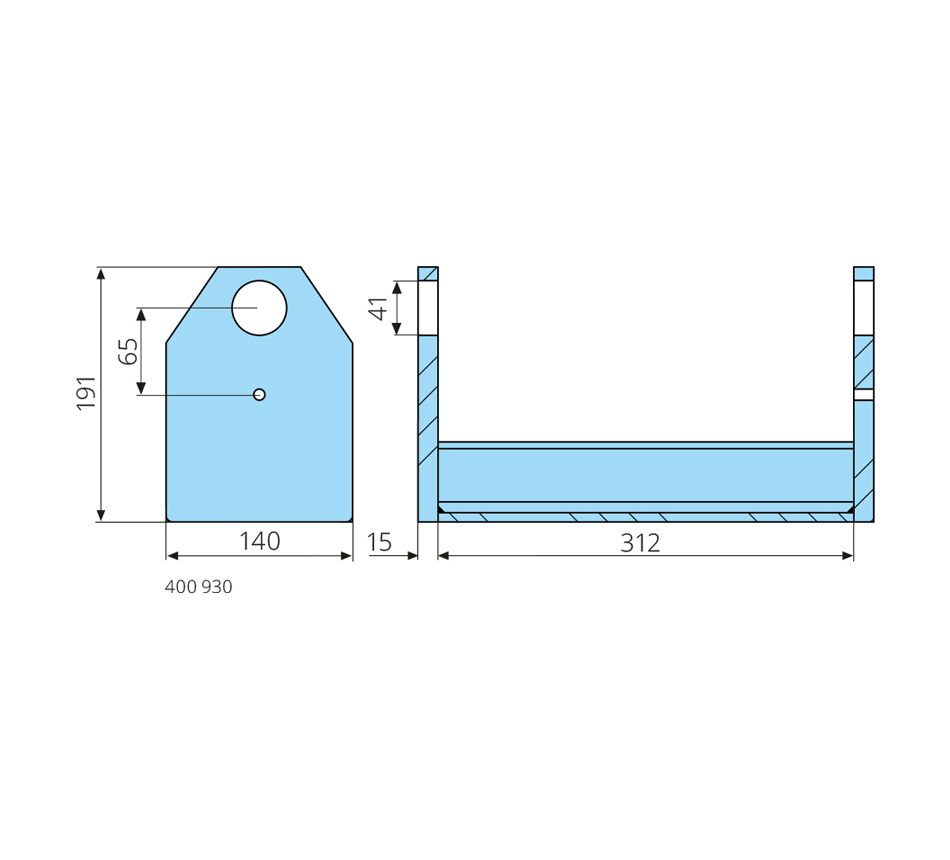 Afmetingen: d – 41 mm, H – 240 mm, L – 312 mm Vervaardiging: zijplaat t – 15 mm