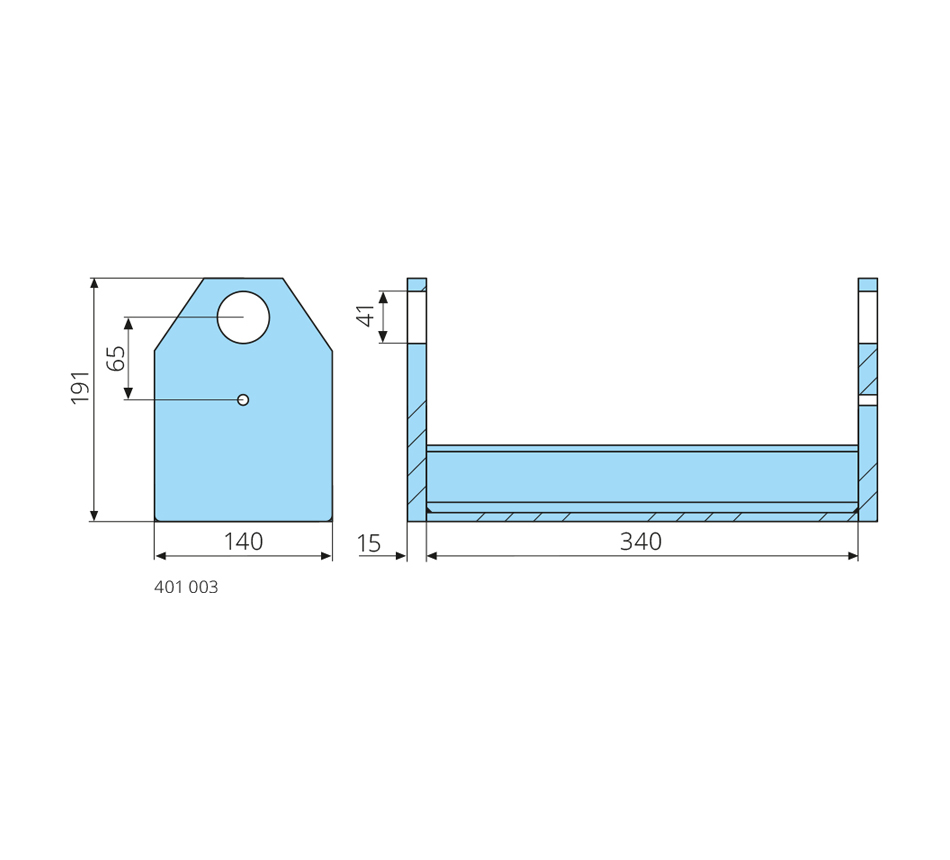 Afmetingen: d – 41 mm, H – 240 mm, L – 340 mm Ontwerp: zijplaat t – 15 mm