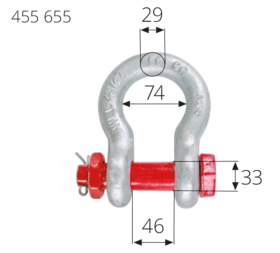 1 1/8″, werkbelasting 9500kg, A-74mm, C-46mm, d1-33mm, d2-29mm