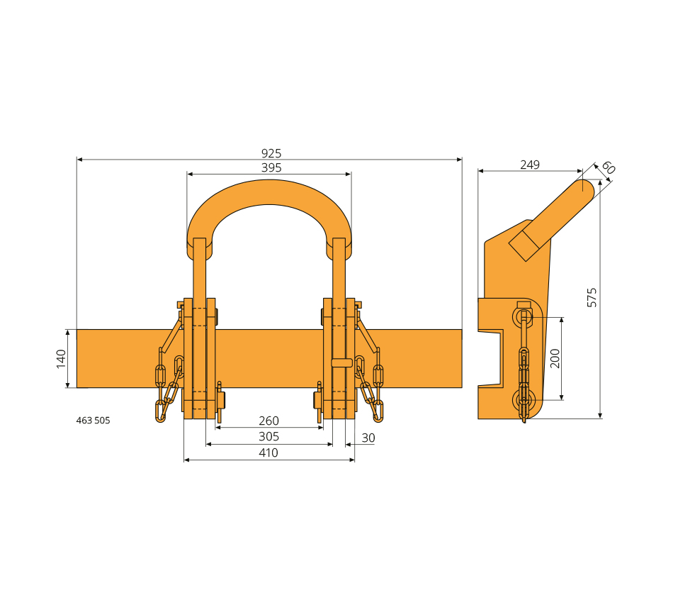 Afmetingen: 60x925mm, fi60mm, H-279mm Ontwerp: Compleet, verwijderbaar, op U – 140 kanaalsectie