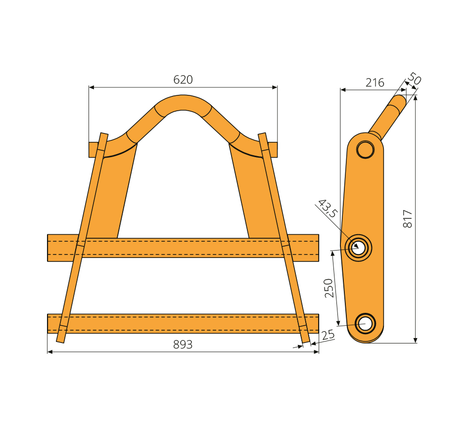 Afmetingen: fi50mm, 817x893mm, H-216mm Ontwerp: compleet, verwijderbaar Opmerkingen: S355J2
