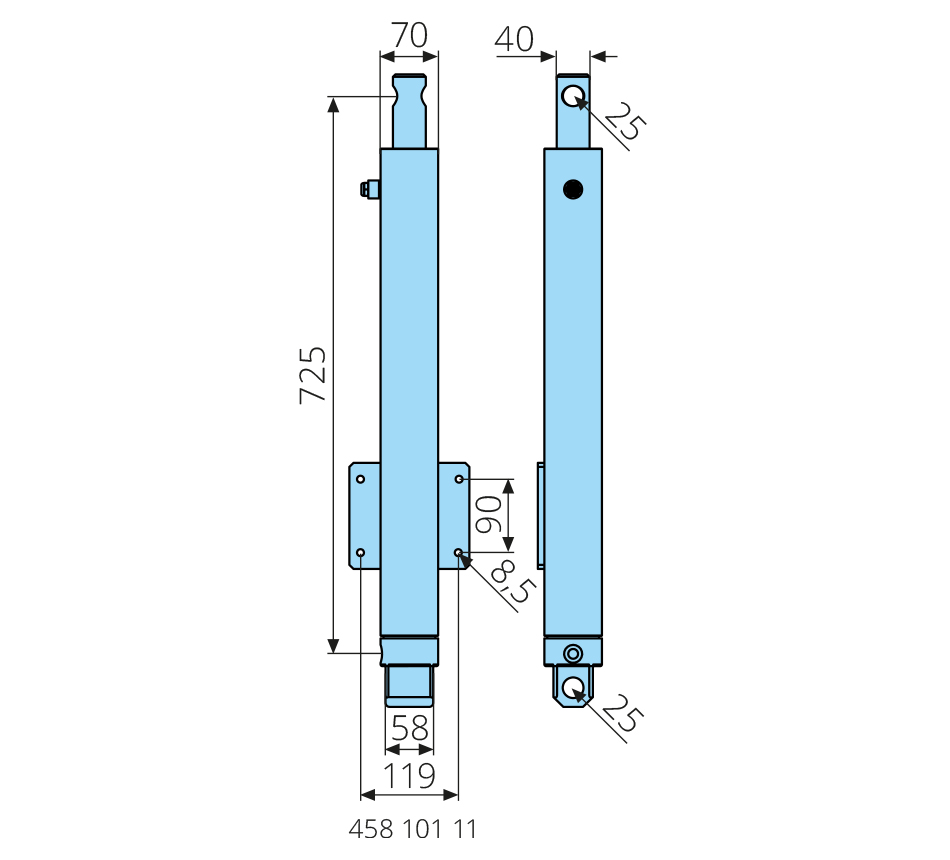 Type: 500 mm slag, enkelwerkend