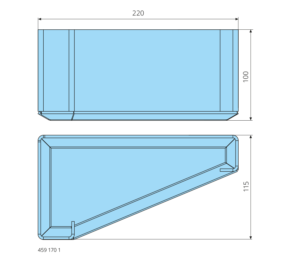 220x115x100mm links achter/rechts voor, S235JR, gegrond