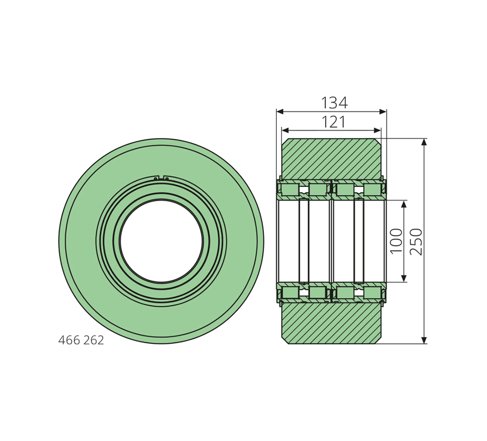 100-250-121mm, met 2 lagers, voor HBC 140 en 180
