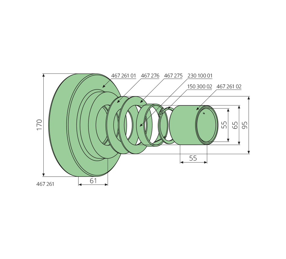 55-170-61mm, 42CrMo4, oppervlaktegehard, zonder afdichtmiddel 467 266