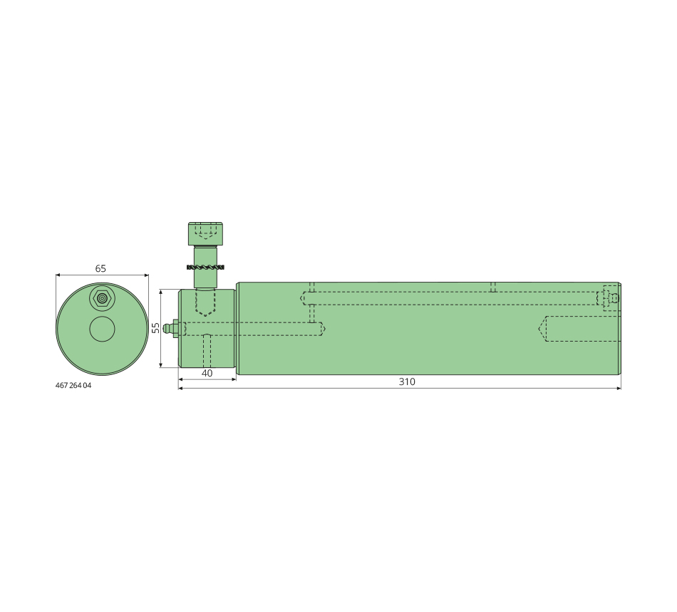 Afmetingen: 65x310mm Uitvoering: met smeernippels, sluitring en bevestigingsschroef Opmerkingen: C45Toepassing: voor geleiderol 467 264