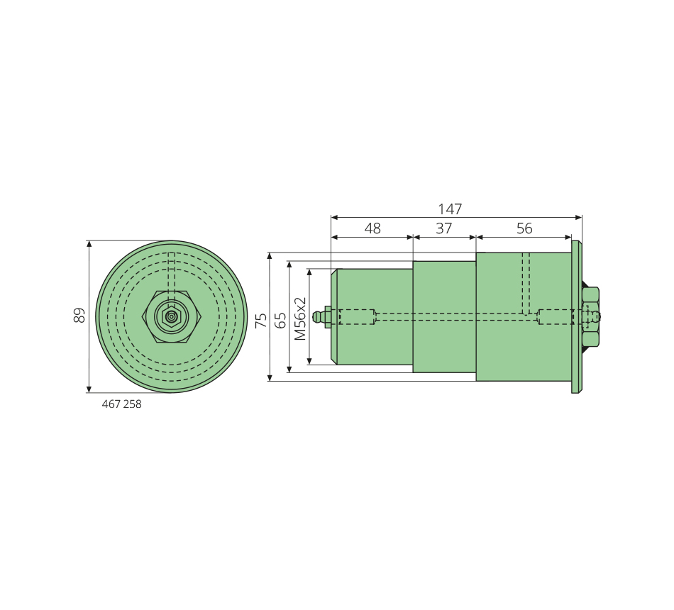 Afmetingen: M56x2mm Uitvoering: met smeernippels Opmerkingen: S355J2