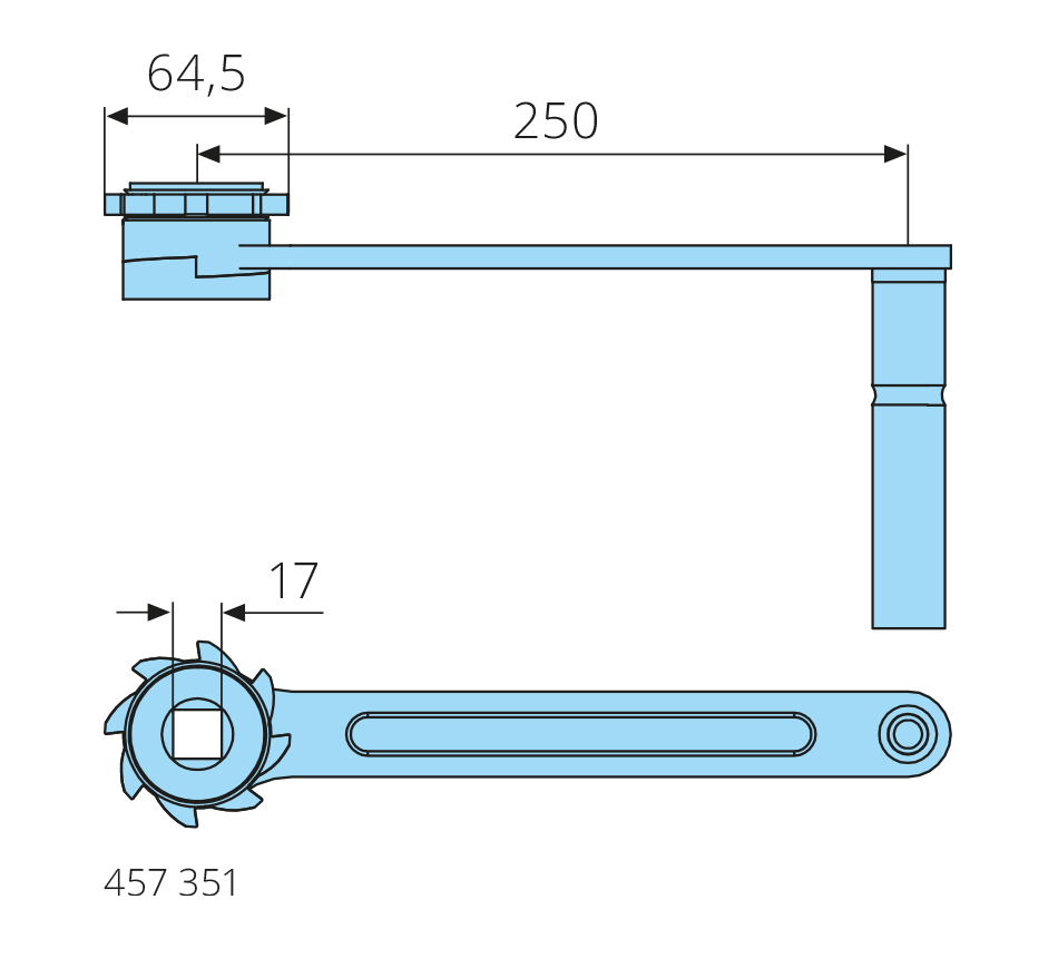 Afmetingen: L-250mm, vierkant 17mm, D-64,5mm Ontwerp: verzinkt