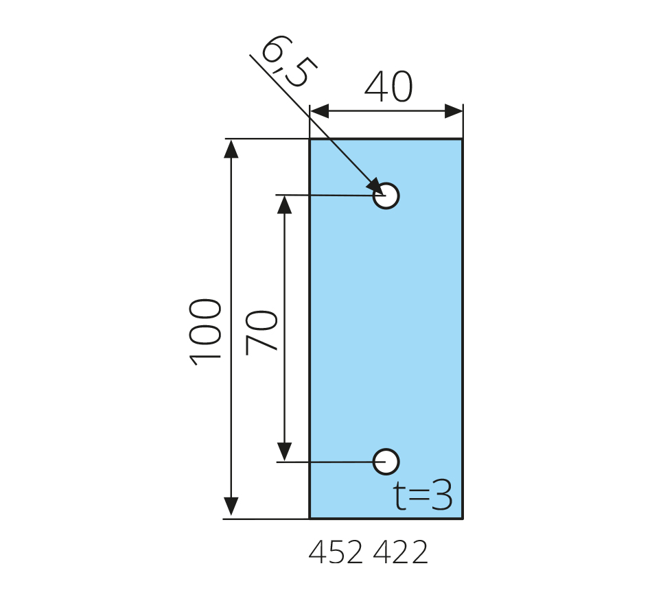 Afmetingen: 100x40x3mm Ontwerp: verzinkt, gesmeed