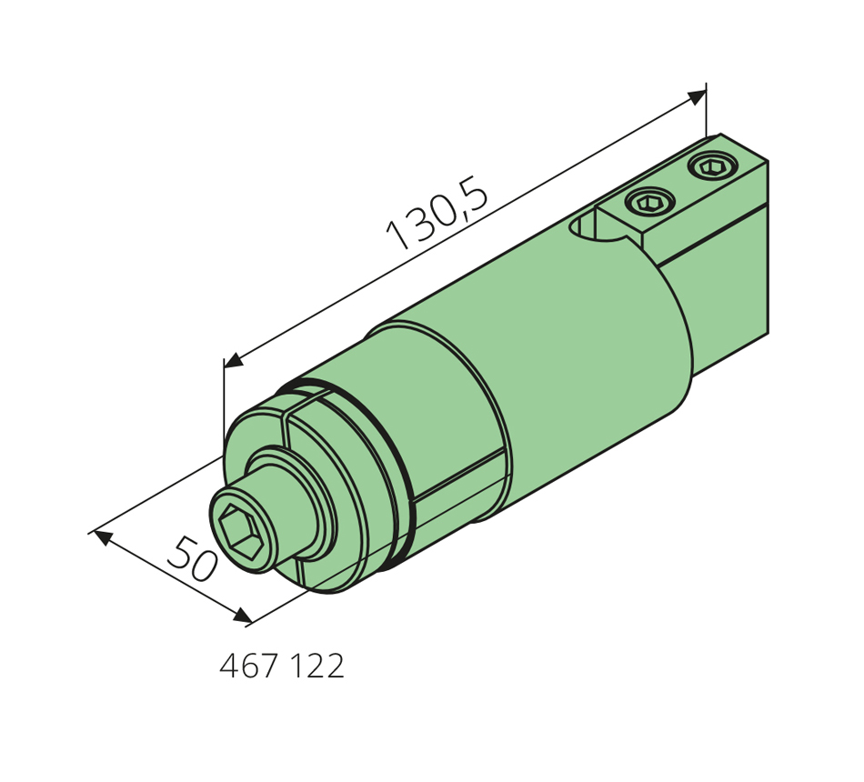 Afmetingen: 50×130,5mm Variant: linkshandig Uitvoering: met draadknipper 467 009, bevestigingshuls en schroeven Opmerkingen: S355J2
