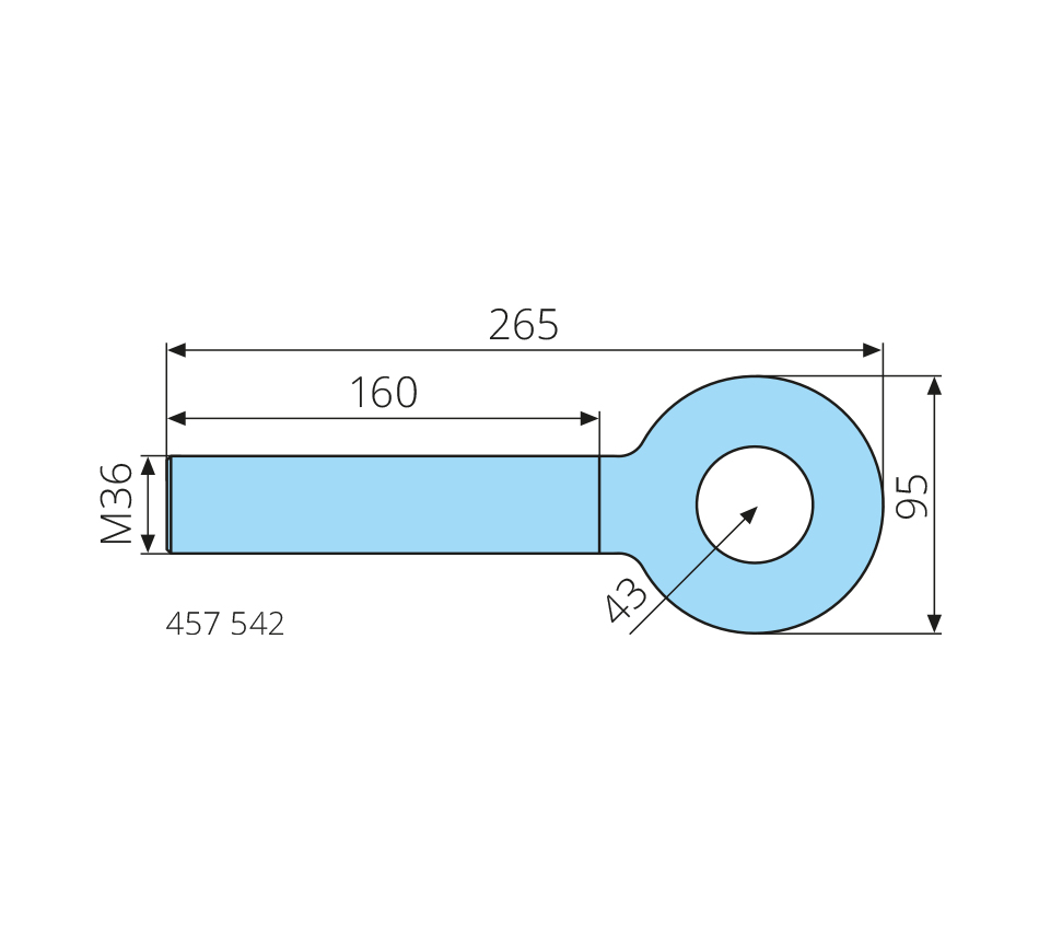 Afmetingen: M36LH, L-265mm, d-43mm Ontwerp: verzinkt