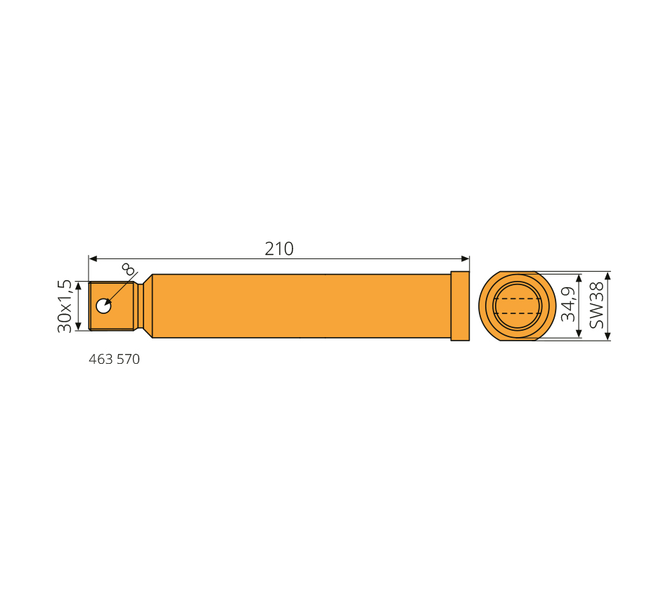 34,9x210mm, M30x1,5mm, 42CrMo4, gehard