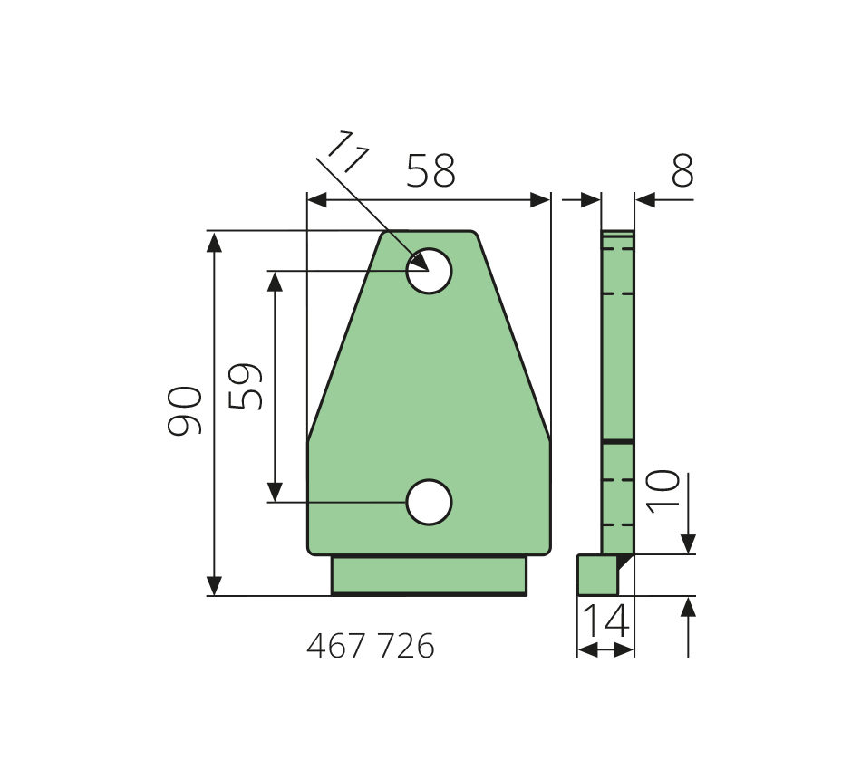 Afmetingen: 90x60x23mm Toepassing: voor geleiderol 467 722