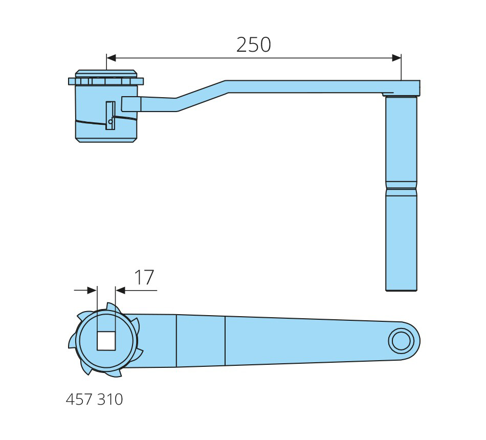 L-250mm, 17mm vierkant, met connector, voor 2,5t lift, BRANO type