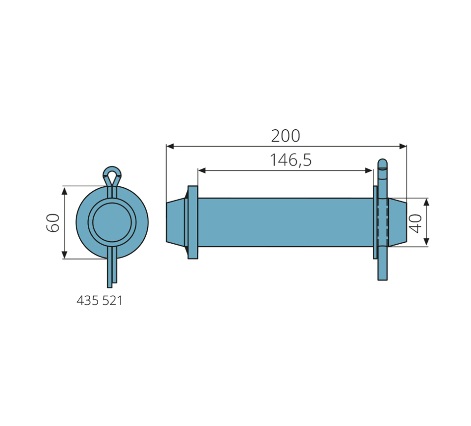 Afmetingen: 40 x 200 mmGemaakt met ring en pin, inductiegehardVariant: bodem