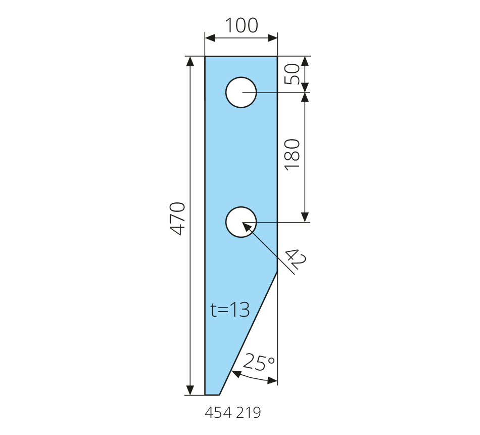 Wymiary: 12x100x470mm Wykonanie: bez blaszki zabezpieczającej Uwagi: S355J2