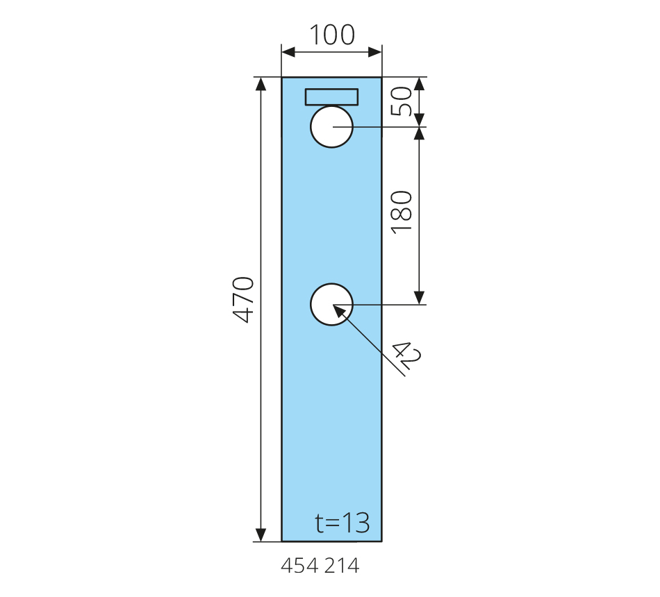 Wymiary: 12x100x470mm Wykonanie: kompletna, z blaszką zabezpieczającą Uwagi: S355J2