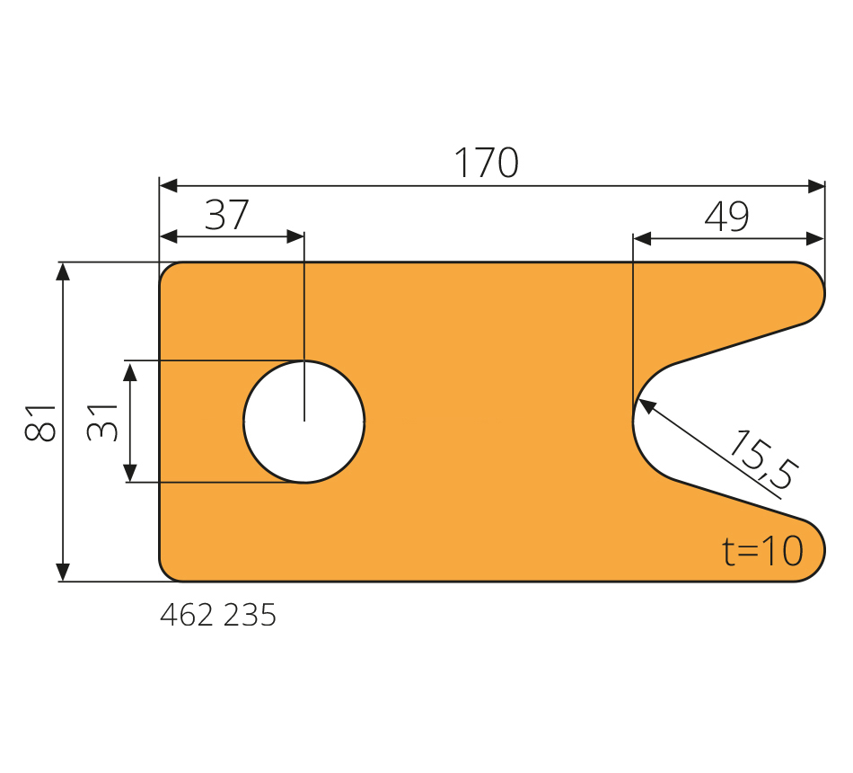 Wymiary: 170x81x1 mm Zastosowanie: do blokady drzwi Uwagi: S355J2