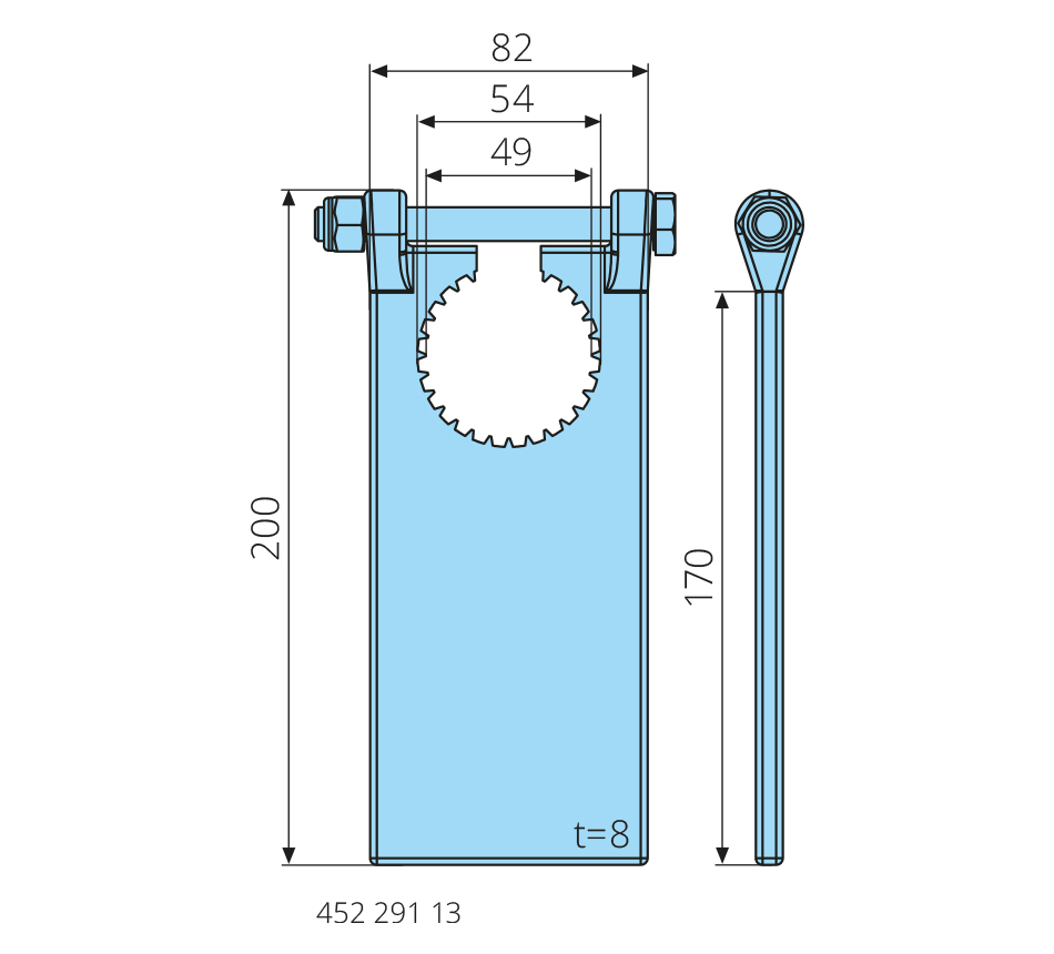 Wymiary: d – 49mm Wykonanie: ze śrubą i nakrętką do mocowania, ocynkowana