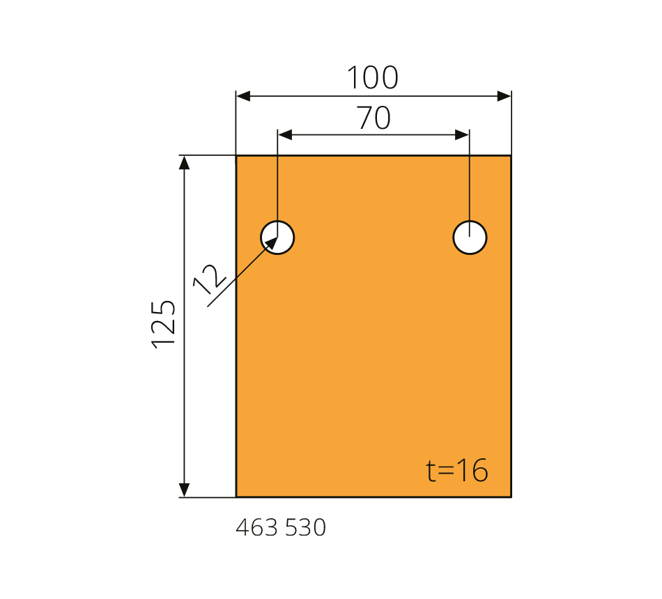 Wymiary: 125x100mm, t-16mm Zastosowanie: do ścian przesuwnych Uwagi: S235JR