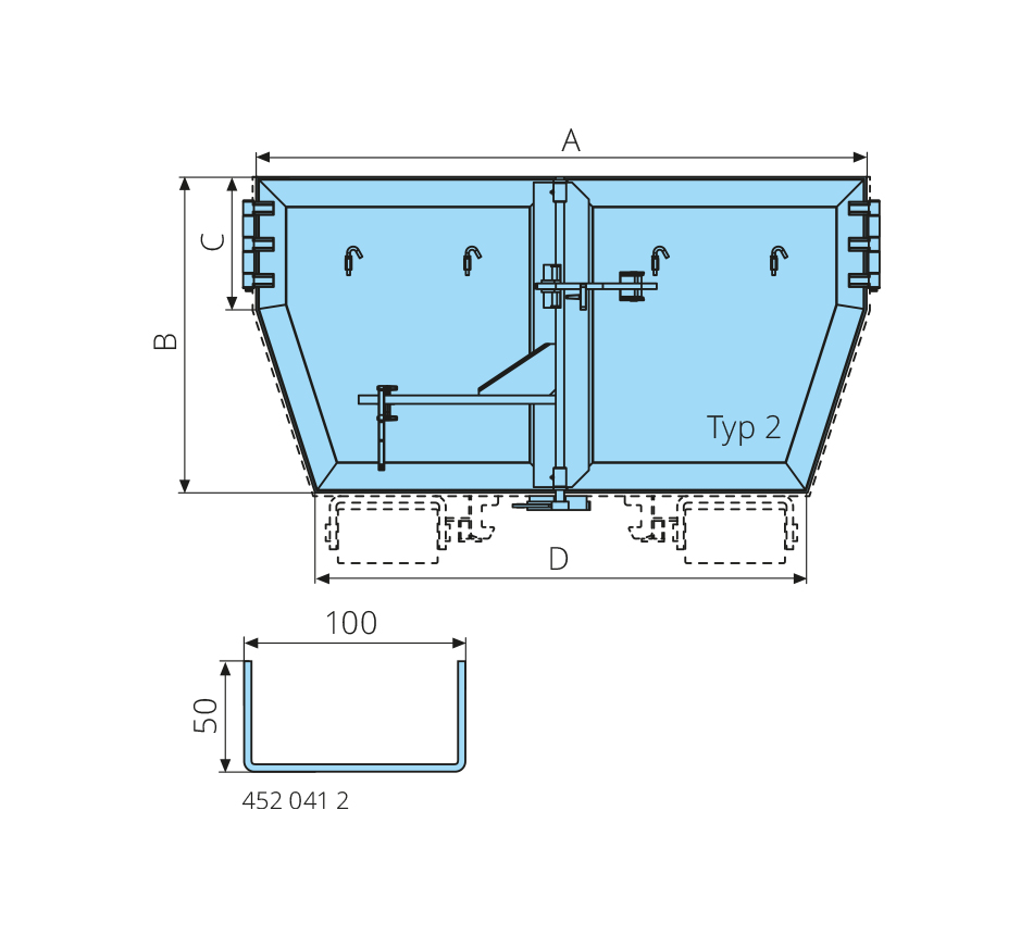 Typ 2, wersja standardowa (ceownik zimnogięty 100x50x4), gruntowane, wg wymiarów podanych przez klienta