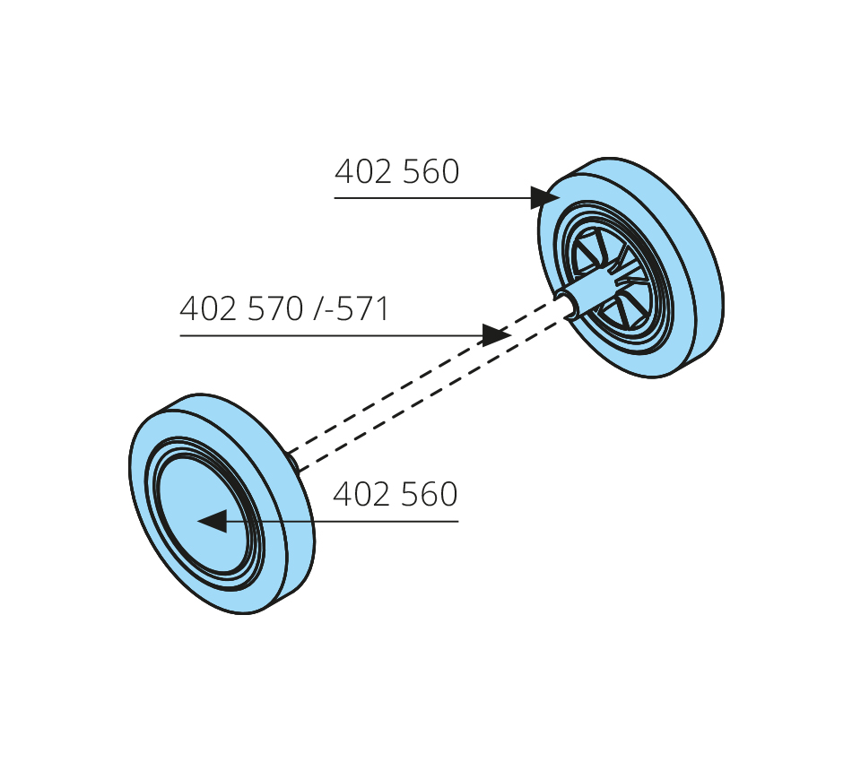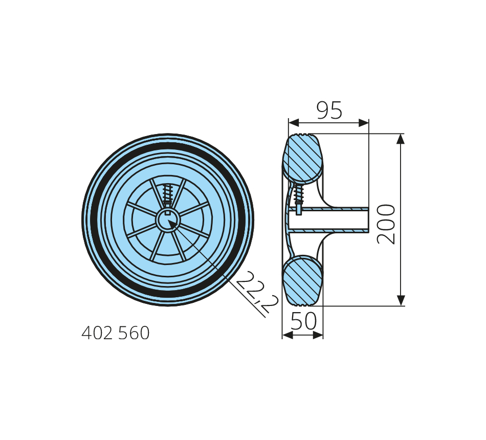 Wymiary: 200x50mm Wykonanie: gumowe opony, plastikowe felgi