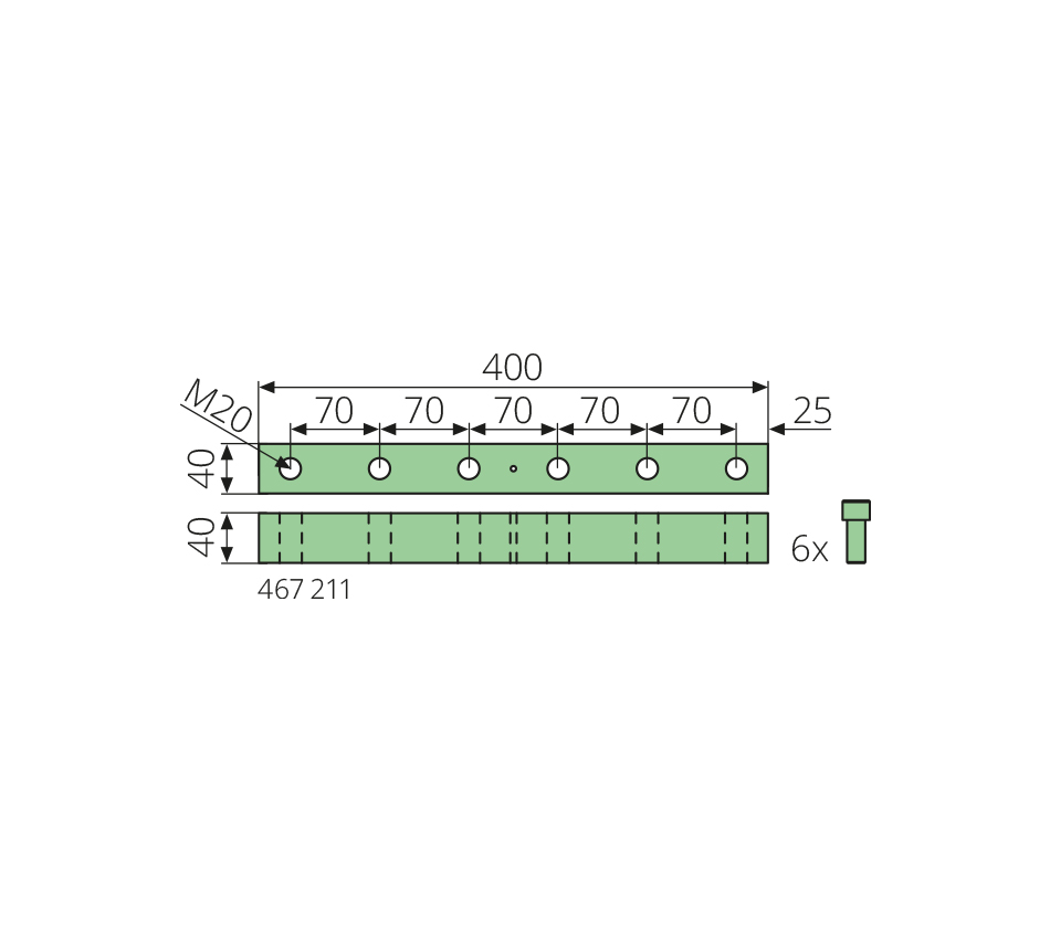 Wymiary: 400x40x40mm Uwagi: MS58 Wykonanie: otwory M20, ze śrubami