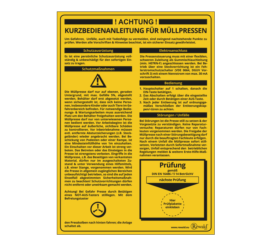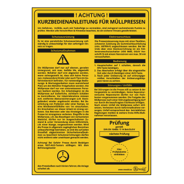 „Kurzbedienungsanleitung für Müllpressen”, 210x297mm, 1szt./arkusz