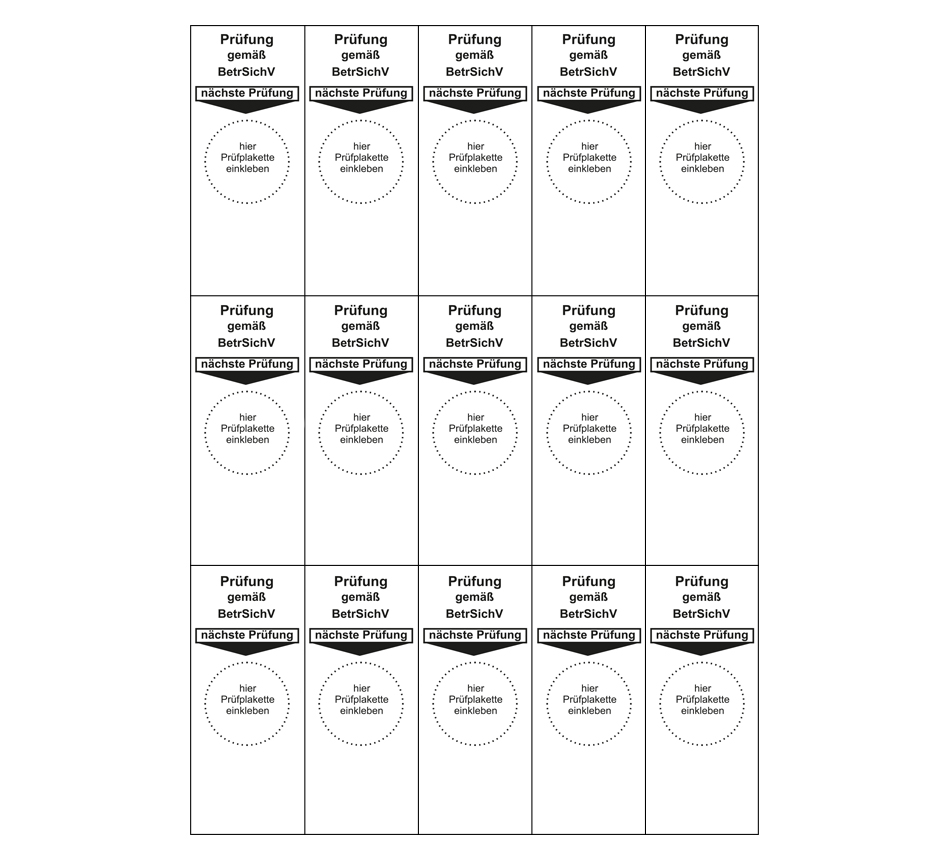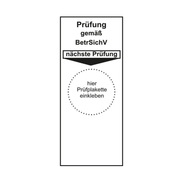 Napis: nächste Prüfung gemäß BestrSichV Wymiary: 40x95mm Liczba sztuk na arkuszu: 15