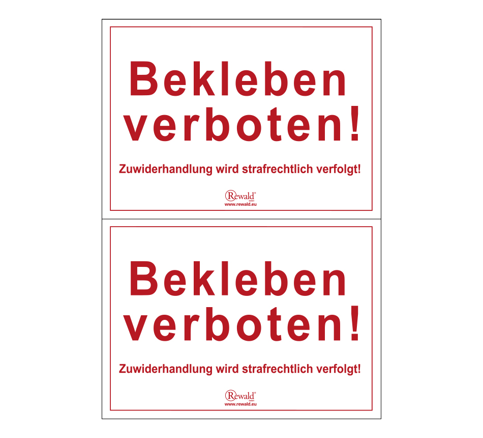 Napis: Bekleben verboten! Wymiary: 210x150mm Liczba sztuk na arkuszu: 2